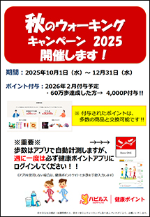 - 4.期間中の歩数が表彰対象に達した場合、令和8年2月にポイントを付与しますので、各自でアプリまたはサイトから商品等への交換手続きを行ってください。